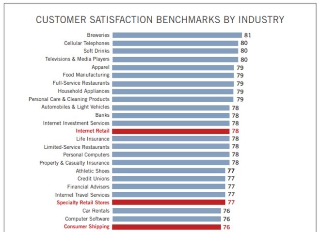 零售行業(yè)顧客滿意度普遍下降,網(wǎng)購滿意度下降最快