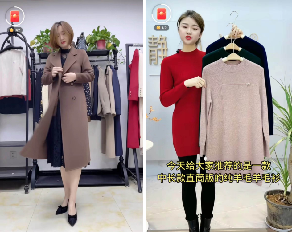 “俏小冰”直播間的羊絨大衣和“靜小沫”直播間的羊絨衫