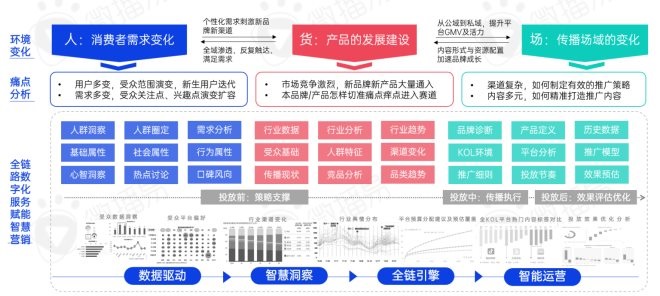 也就是說,第三方KOL投放平臺(tái)即需要實(shí)現(xiàn)投放交易撮合,還需要用全鏈路數(shù)字化能力賦能品牌營銷,微播易在KOL投放中通過數(shù)據(jù)分析實(shí)現(xiàn)投放前的策略支撐、投放中的傳播執(zhí)行、投放后的效果評估優(yōu)化,形成“數(shù)據(jù)驅(qū)動(dòng)、智慧洞察、全鏈引擎、智能運(yùn)營”的智能化營銷鏈條。