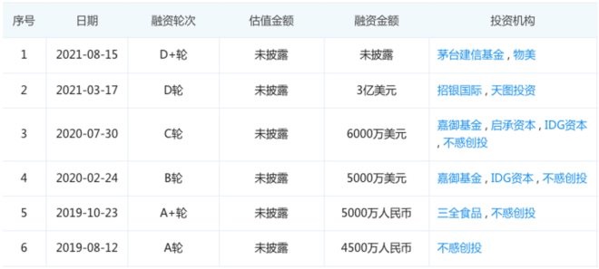 鍋圈食匯的擴張速度,也是資本力捧的結(jié)果。天眼查顯示,從2019年8月到2021年8月,短短兩年時間里,鍋圈食匯收獲了來自三全食品、不惑創(chuàng)投、IDG資本、茅臺建信基金等多家機構(gòu)的六輪融資,刨去最近一筆未披露的融資金額,前五輪融資累計金額達27億元人民幣。這個融資頻率和金額,在業(yè)內(nèi)并不多見。