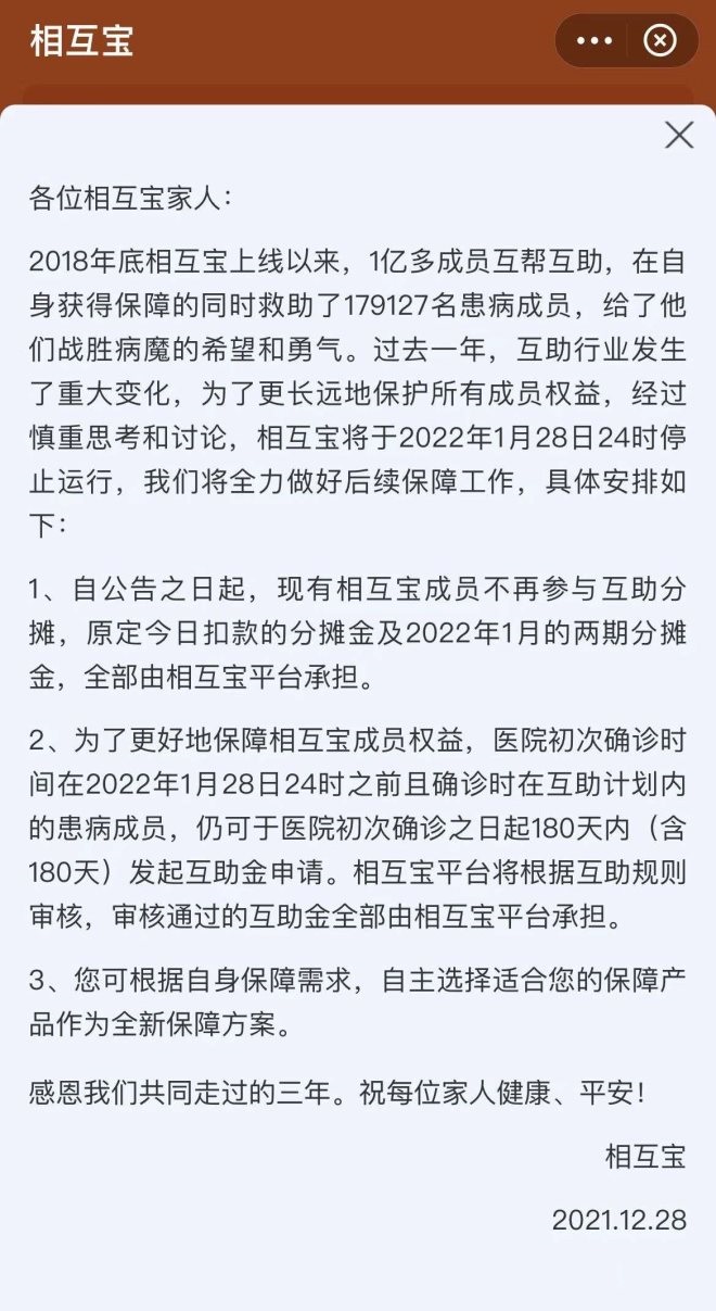 沒想到,2021年的最后幾天,迎來了網(wǎng)絡(luò)互助的落幕。
