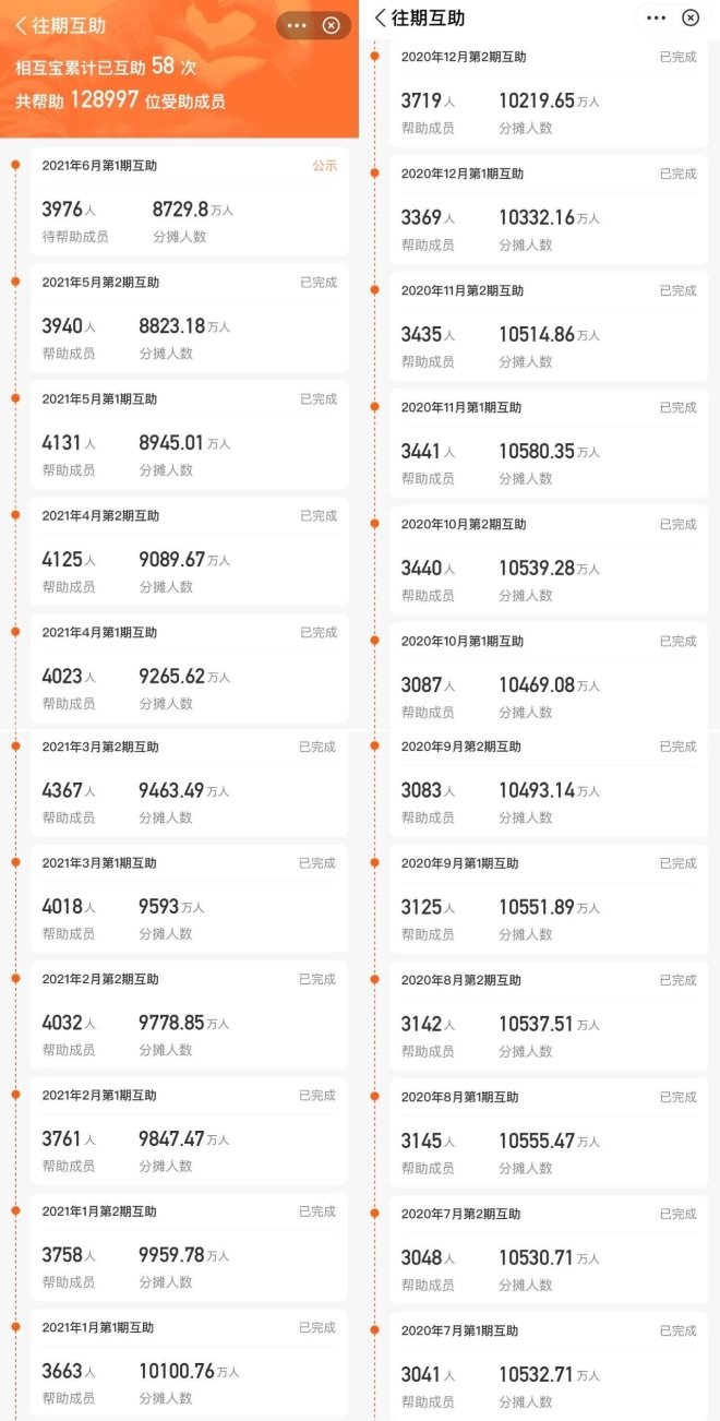 據(jù)當(dāng)前數(shù)據(jù),當(dāng)前相互寶已經(jīng)有近7500萬成員,籌集互助金259.37億元,至今共發(fā)起71期愛心分?jǐn),幫助?8萬位患病成員。