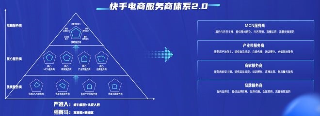 會(huì)上,李叢杉正式發(fā)布“快手電商服務(wù)商生態(tài)體系2.0”,在優(yōu)質(zhì)、核心、戰(zhàn)略這三個(gè)以實(shí)力劃分服務(wù)商的基礎(chǔ)上,還按服務(wù)商擅長(zhǎng)的領(lǐng)域?qū)⑵浞譃镸CN服務(wù)商、產(chǎn)業(yè)帶服務(wù)商、商家服務(wù)商和品牌服務(wù)商。