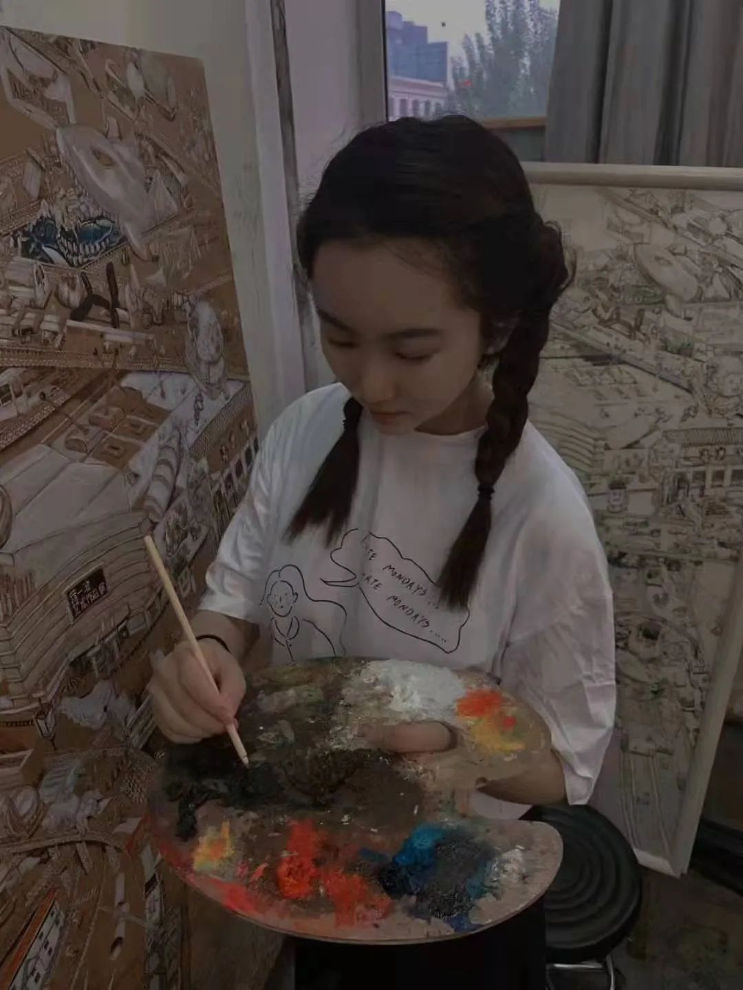對于蔣一冰來說,做騎手除了有穩(wěn)定的收入外,那種穿梭在城市大街小巷的自由感是她在室內(nèi)未曾有的體驗,騎著車感受風的那一刻,她似乎更進一步的融入了這座城市,有時繪畫靈感也會隨之迸發(fā)出來。