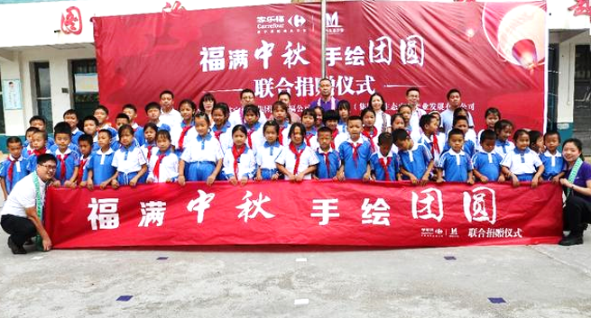 中秋佳節(jié)前夕,家樂(lè)福中國(guó)與貴州茅臺(tái)(集團(tuán))生態(tài)農(nóng)業(yè)產(chǎn)業(yè)發(fā)展有限公司等相關(guān)人員發(fā)起“福滿中秋 手繪團(tuán)圓”聯(lián)合公益活動(dòng),走入貴州省丹寨縣,為丹寨縣孔慶小學(xué)共同捐贈(zèng)校服、書(shū)包、文具等辦公學(xué)習(xí)用品,并聘請(qǐng)知名美術(shù)老師,為孩子搭建專業(yè)的美育課堂。此外,活動(dòng)還將挑選部分優(yōu)秀學(xué)生前往上海等地游學(xué)。