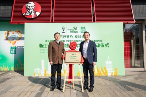 在杭州濱江區(qū)世茂之西湖肯德基餐廳,浙江省商務(wù)廳、浙江省市場監(jiān)督管理局、杭州市商務(wù)局、杭州市濱江區(qū)商務(wù)局、浙江省餐飲行業(yè)協(xié)會及各界代表共同見證了“浙江省首家‘肯德基食物銀行’揭牌儀式”。