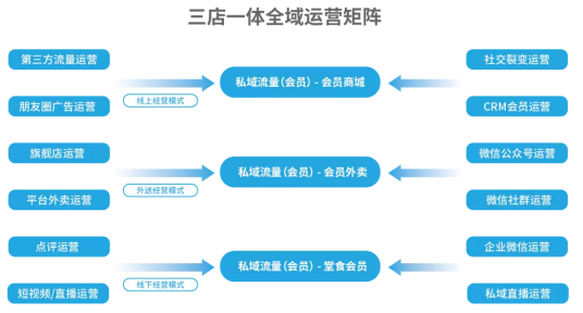 微盟智慧餐飲的定位,就是簡(jiǎn)單的八個(gè)大字——三店一體,私域運(yùn)營(yíng)。