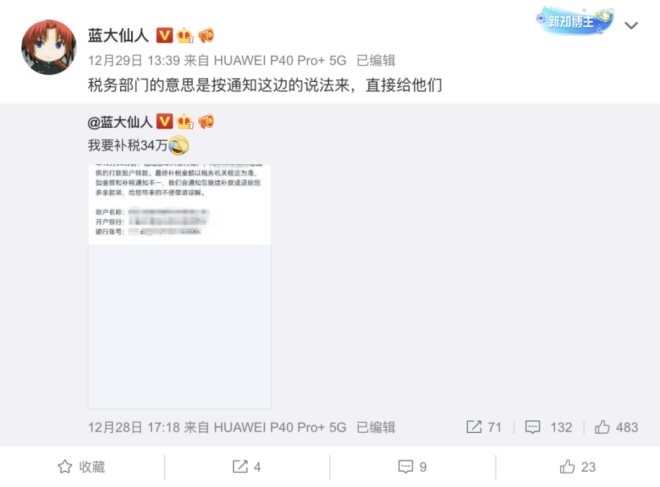繼薇婭之后,電商達(dá)人補(bǔ)稅潮來臨,有人高達(dá)百萬