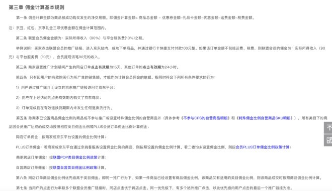 京東聯(lián)盟官網(wǎng)顯示,聯(lián)盟會員傭金金額為:實(shí)際所得收入(90%)與平臺服務(wù)費(fèi)(10%)之和。并舉例稱,買家點(diǎn)擊聯(lián)盟會員的推廣鏈接,進(jìn)入京東站內(nèi),成功下單商品,并通過銀行卡快捷支付付款100元整。如果該訂單不包括運(yùn)費(fèi)、稅費(fèi),則聯(lián)盟會員的傭金為:實(shí)際所得收入(90元)與平臺服務(wù)費(fèi)(10元),會員提現(xiàn)該筆90元的收入。