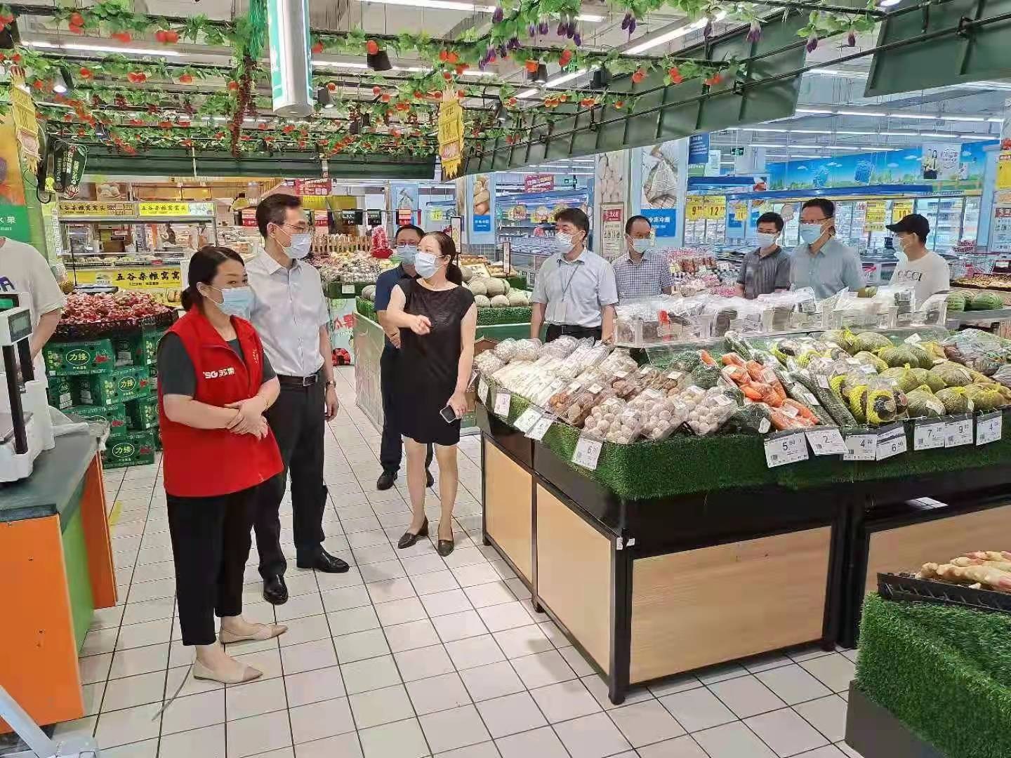 8月12日,儀征市代市長李林、副市長李強、商務局長朱曉嵐等一行蒞臨華潤蘇果儀征萬年大道店檢查疫情防控工作及民生保供情況。
