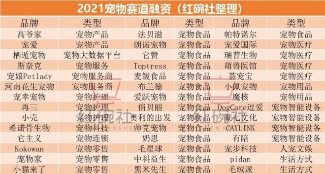 分析最“卷”賽道,除了新茶飲和咖啡,紅碗社還觀察了多個(gè)消費(fèi)賽道。如越來(lái)越多的年輕人熱衷于吸貓和擼狗,由此催生出的龐大的寵物產(chǎn)業(yè)。寵物行業(yè)整體規(guī)?焖贁U(kuò)張,預(yù)估到2023年該產(chǎn)業(yè)規(guī)模將突破4400億元,據(jù)紅碗社不完全統(tǒng)計(jì),2021年該領(lǐng)域融資事件達(dá)40起,其中僅寵糧就占35%左右,對(duì)于品質(zhì)、營(yíng)養(yǎng)、口味等方面要求更高,且寵物智能家居需求有所提升,寵物消費(fèi)升級(jí)釋放更多機(jī)會(huì)。