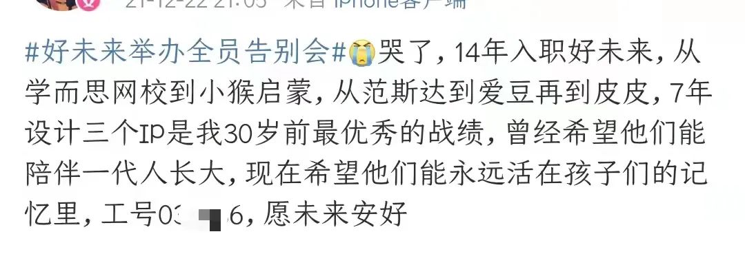 12月22日上午,好未來舉辦的一場主題為“感恩同行”的線上全員會上。這場會議是針對2萬名中小學(xué)教培老師舉辦,在此前的11月13日,好未來宣布,將在2021年12月31日停止K9業(yè)務(wù)。