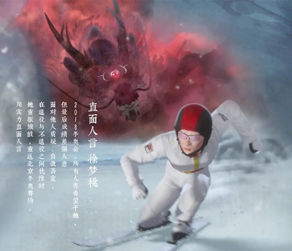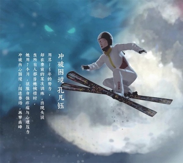 用盡15年的努力,卻在賽前的某次訓練中出現(xiàn)失誤,“只一步之遙,冰封于此”,當所有人都替孔凡鈺惋惜時,她用7個月的時間征服身體疼痛與心理壓力,沖破內(nèi)心困境,再次闖進賽上!颁撝矶侨玑敚瑹o堅不摧,然斷其韌”。老將賈宗洋在全身嵌入4塊鋼板和22顆鋼釘?shù)木秤鱿,忍受常人無法想象的痛苦與磨難,與傷病搏斗傲立賽場,留給世界屬于中國“鋼鐵俠”的優(yōu)雅。名將徐夢桃囊獲了多個世界杯冠軍,作為奪冠熱門的冰山之驕卻在平昌失誤,“縱竭力以赴,尤墜于偏見深淵”,面對他人質(zhì)疑,陷入自我否定中,她最后決定重振旗鼓,用實力直面人言。所謂異獸,不過心魔,凡戰(zhàn)勝心魔者,必將戰(zhàn)無不勝。