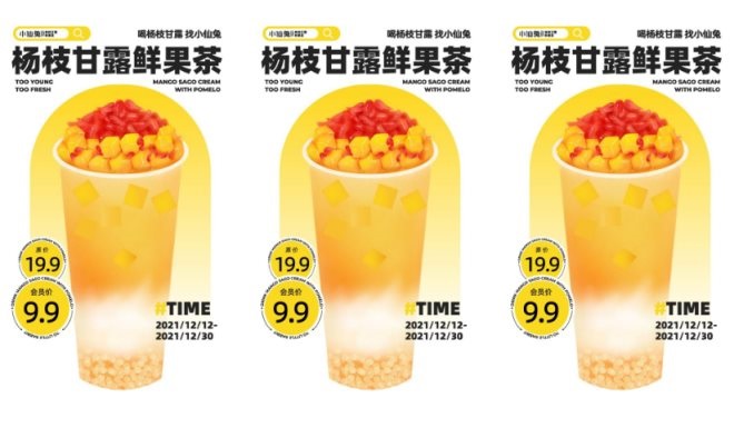 「小仙兔」在2020年開始打磨第一家門店,主打會員價9.9元的平價鮮果茶,以楊枝甘露鮮果茶為代表產(chǎn)品。
