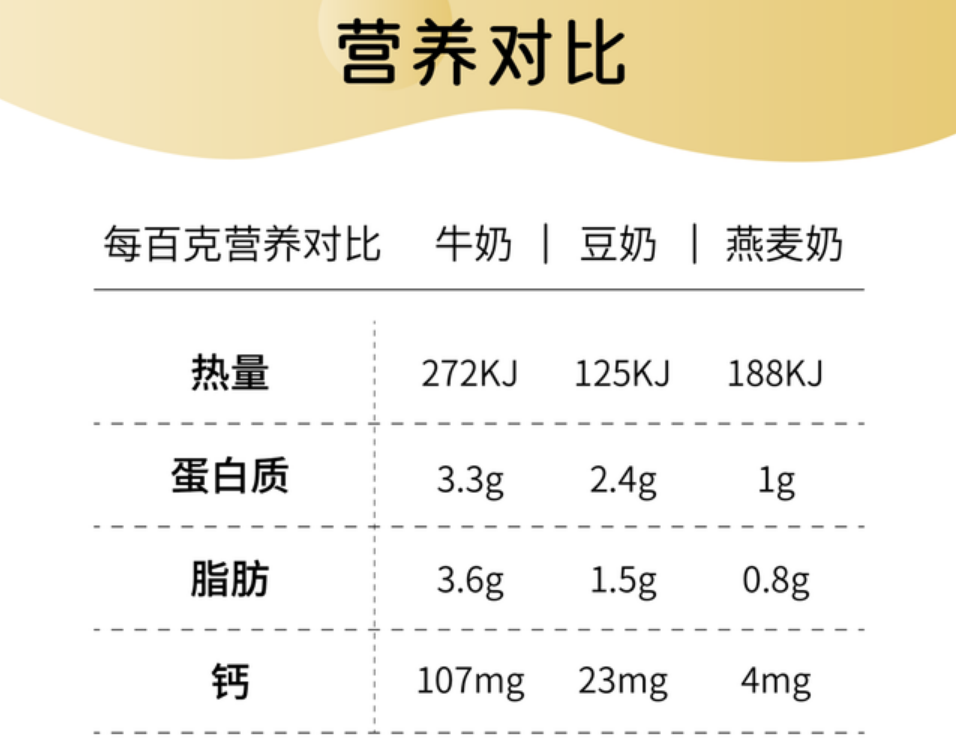 不過,相比動(dòng)物蛋白,植物蛋白雖具有含量高、質(zhì)量優(yōu)、不含乳糖、粗纖維、維生素與礦物質(zhì)含量豐富等優(yōu)點(diǎn),但在吸收效率明顯不如前者。當(dāng)下植物奶賽道的“領(lǐng)頭羊”燕麥奶,大多以咖啡伴侶、早餐飲品等小眾方式出現(xiàn)。
