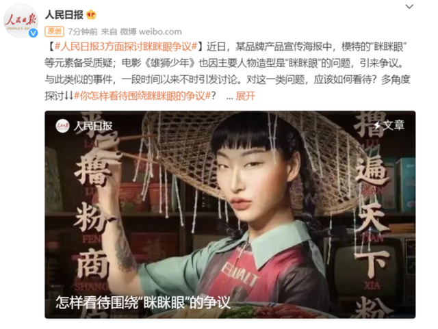 第二次是產(chǎn)品模特發(fā)聲:“我的眼睛小就不配當(dāng)中國人了嗎?”她認(rèn)為,事事都要上綱上線的話,就是一種病態(tài)了。