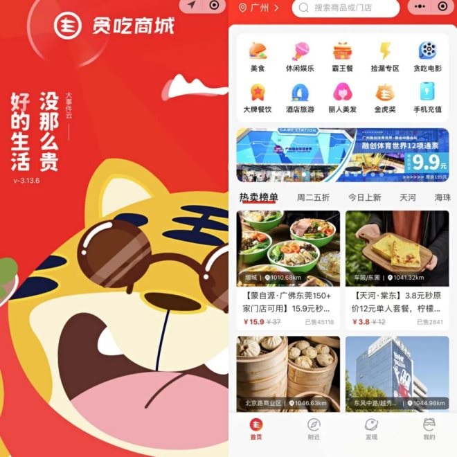 大事件科技成立于2015年,最初從廣州、佛山、深圳等華南地區(qū)城市做起,在近幾年開始輻射全國城市,目前已覆蓋包括北京、上海、廣州、深圳、成都等七個城市。其商業(yè)模式主要聯(lián)通B端與C端,以新消費(fèi)平臺為定位,通過接洽餐飲、娛樂等消費(fèi)類商家,將商家的折扣類優(yōu)惠產(chǎn)品上線其自有線上小程序「貪吃商城」,推送給用戶。當(dāng)用戶在商城內(nèi)成交后,大事件將與商家進(jìn)行分傭獲得收入。