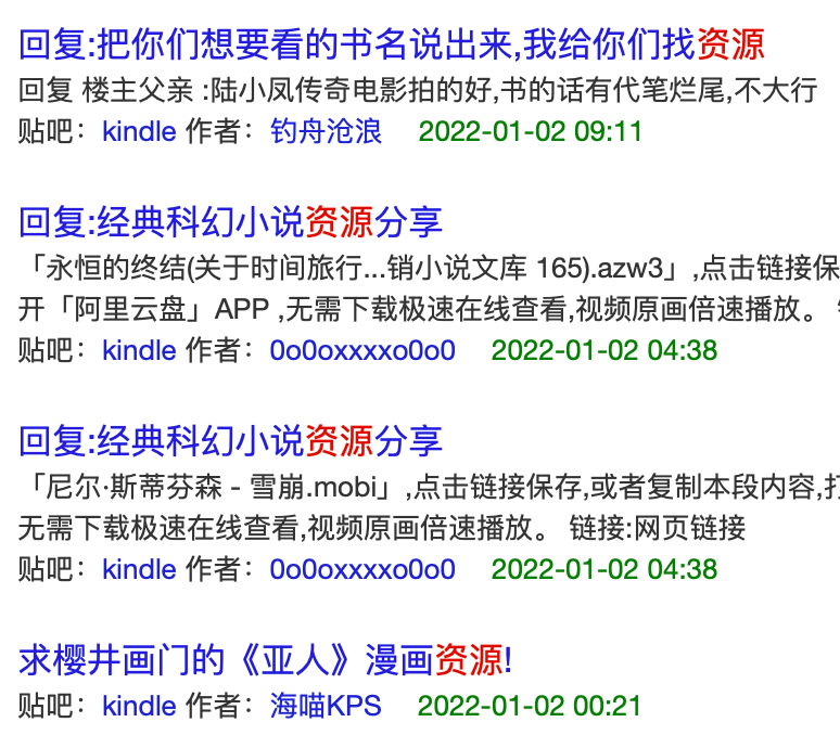 Kindle貼吧內熱帖,多為資源分享帖