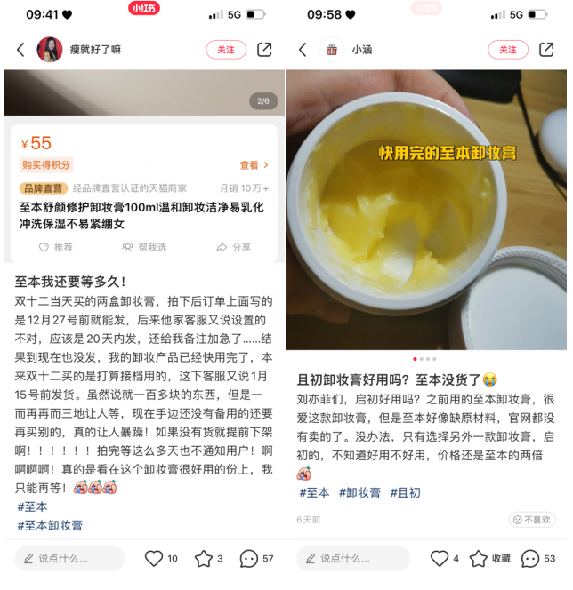 而此次至本臨時停產(chǎn)的卸妝膏是品牌的另一個明星單品。在品牌天貓旗艦店,該卸妝膏月銷量已達10萬+,不過目前已處于下架狀態(tài)。