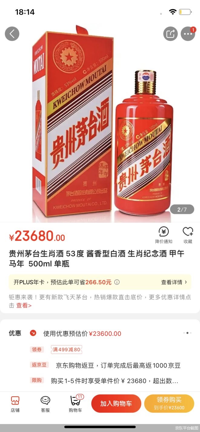 據(jù)北京商報記者不完全統(tǒng)計,截至今日,第一款生肖酒——馬年茅臺生肖酒原箱售價20000元/瓶,散瓶售價19000元/瓶;羊年茅臺生肖酒原箱售價31000元/瓶,散瓶售價29000元/瓶。此外,剩下幾款茅臺生肖酒價格在4000-6000元/瓶區(qū)間不等。值得一提的是,馬年茅臺生肖酒與羊年茅臺生肖酒的發(fā)售價均是849元/瓶。