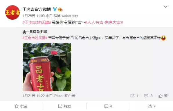 這一事件在1月5日登上了微博熱搜。許多網(wǎng)友表示,還沒等反應(yīng)過來,不少姓氏已經(jīng)呈缺貨狀態(tài)。盡管市場反響不錯,但其實“姓氏罐”這個花樣已經(jīng)不再新鮮——同樣的套路王老吉在2021年春節(jié)前就玩過一遍。