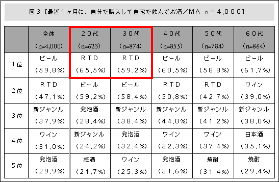 三得利調查也發(fā)現(xiàn),20-50歲人群中對日本燒酒的飲用已淡出TOP5之列,而RTD受到熱捧。RTD指酒精度低于9%、開罐即飲的酒產品。