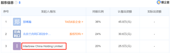 愛企查數據顯示,格英(上海)品牌管理有限公司于近日發(fā)生了股權變更,新增股東為INTERBREW CHINA HOLDING LIMITED(英特布魯中國),出資比例達到10%。