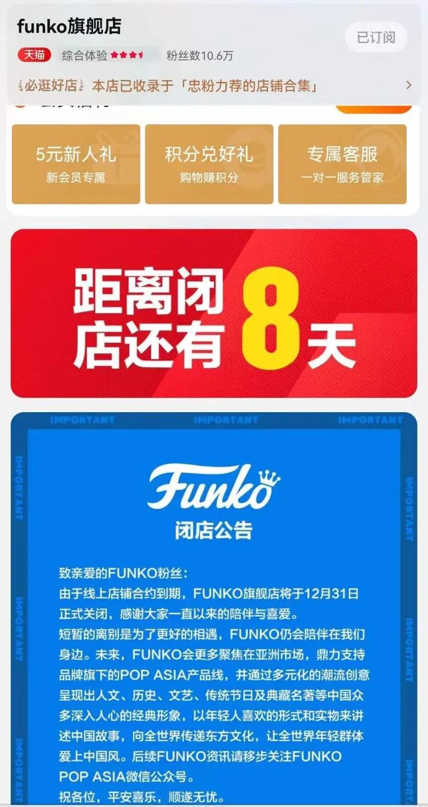 但主觀上,F(xiàn)unko確實(shí)表現(xiàn)得不太在意國內(nèi)市場(chǎng),不然也不會(huì)在盲盒如此流行的近幾年錯(cuò)失許多在中國市場(chǎng)發(fā)展的機(jī)會(huì),而最終選擇在圣誕前夕宣布關(guān)閉天貓旗艦店。