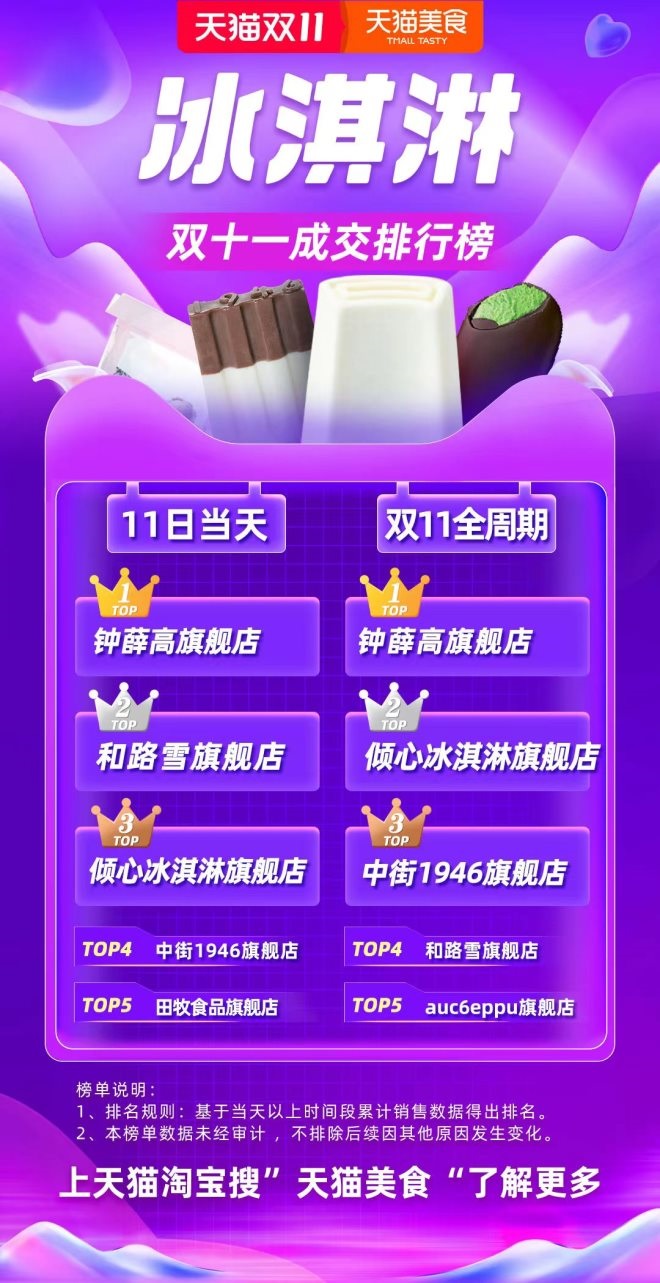國貨雪糕品牌已經(jīng)實(shí)現(xiàn)崛起,2021年全年天貓冰淇淋品牌銷售排行榜中,排名前十的品牌中,僅有兩家外資品牌上榜。其中,鐘薛高在2021年天貓雙十一、雙十二冰品品類銷售中連續(xù)拿下銷冠。