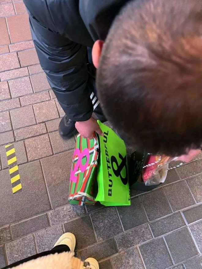 這一袋子面包,一個(gè)人消受不起,于是我站在邊叫了個(gè)閃送,打算給遠(yuǎn)在通利福尼亞的姐妹送兩盒。