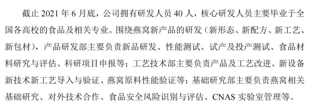 而依據(jù)一般協(xié)會(huì)標(biāo)準(zhǔn)制定人員的規(guī)格,燕之屋最起碼在其中要安排4-5名專業(yè)人士,這也表明其他做科研的力量也就35人左右。