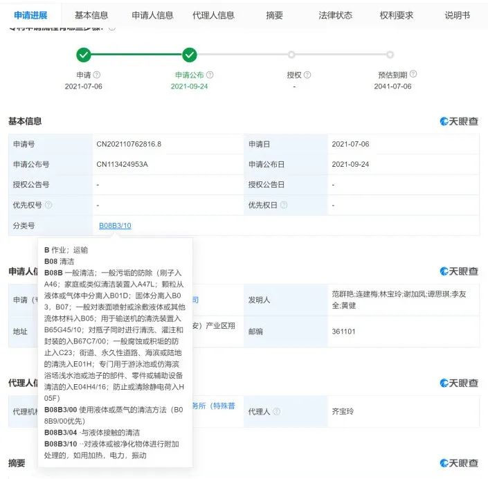 比如,燕之屋剛剛獲得的《一種適合孕婦食用的即食燕窩產(chǎn)品及其制備方法》專利,點(diǎn)擊具體登記信息查詢就可以發(fā)現(xiàn),分類號(hào)顯示這是一個(gè)工業(yè)制備流程的專利,而并非產(chǎn)品本身。