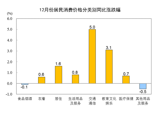 2021年CPI同比上漲0.9% 12月同比上漲1.5%