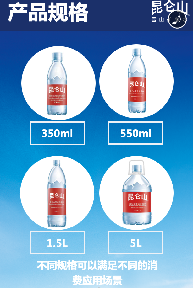 從海報可以看出,昆侖山全新的瓶型一改以往的長瓶頸,硬朗的“手榴彈”瓶身、較為簡單且圓潤的中庸設計,甚至有點兒神似農(nóng)夫山泉。