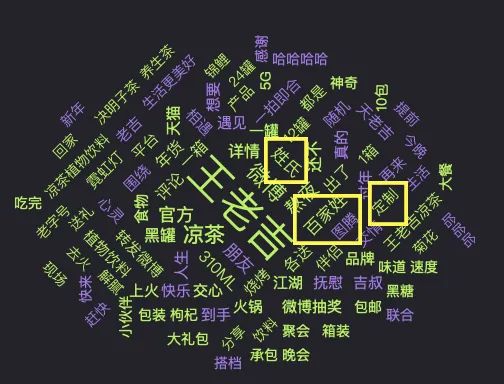 “百家姓”、“定制”、“姓氏”、“圖騰”等關(guān)于此次營(yíng)銷(xiāo)的相關(guān)內(nèi)容,不出意料地出現(xiàn)在了網(wǎng)友對(duì)王老吉品牌討論的高頻詞匯中。