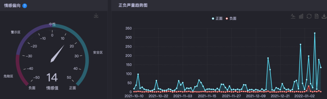 從情感偏向中能看到,受眾對(duì)王老吉品牌的情感值是14,正面討論的內(nèi)容高幅度大于負(fù)面,這也側(cè)面說(shuō)明了對(duì)于消費(fèi)者來(lái)說(shuō),此次定制體驗(yàn)在一定程度上是具有差異性且有價(jià)值的。