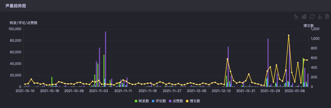 根據(jù)時(shí)趣洞察引擎檢索可以發(fā)現(xiàn),王老吉品牌聲量在發(fā)布姓氏罐后呈增長(zhǎng)的趨勢(shì),社交表現(xiàn)出現(xiàn)了大幅度的波動(dòng)情況。