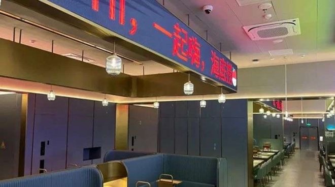 繼粉色主題店后,近日,餐見君發(fā)現(xiàn)海底撈有門店悄悄變藍(lán)了。