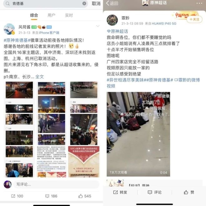 實(shí)際上,為肯德基拼命的年輕人,早就開(kāi)始了行動(dòng)。去年3月份,原神與肯德基的聯(lián)名中,一大批二次元徹夜排隊(duì),領(lǐng)取徽章的方式也十分“社死”,需要在指定日期內(nèi),到店購(gòu)買(mǎi)指定套餐,并當(dāng)面對(duì)店員說(shuō)出口令“異世相遇,盡享美味”。