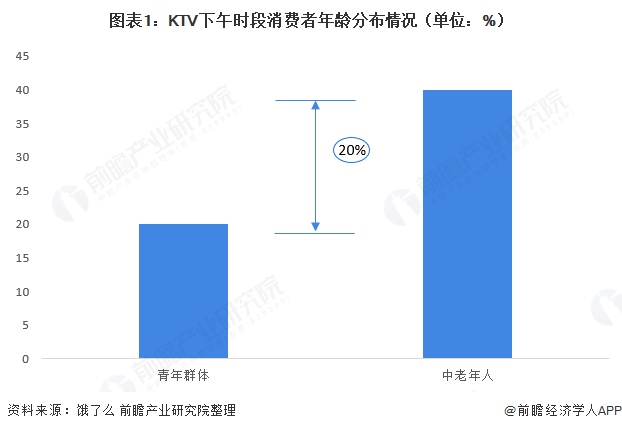 前瞻產(chǎn)業(yè)研究院整理的數(shù)據(jù)顯示,選擇在KTV下午消費(fèi)的50歲以上中老年人數(shù)比青年群體要高出近20%。