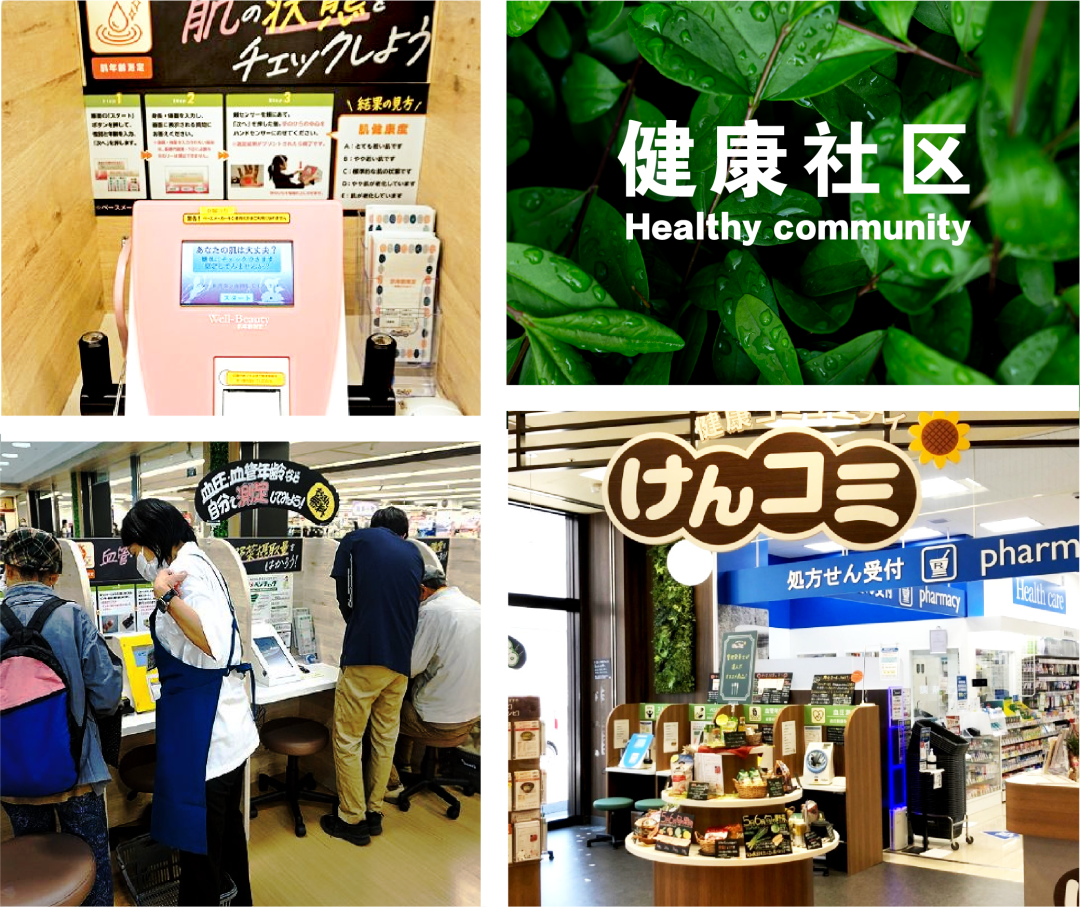 健康社區(qū)目前已開設(shè)3家,都設(shè)在有Summit與住友集團(tuán)旗下藥妝店Tomod’s聯(lián)合開店的門店。健康社區(qū)配備了多臺(tái)提供可測(cè)量血壓、糖化程度、血管年齡等項(xiàng)目的自助健康測(cè)量?jī)x,并在店內(nèi)有Tomod’s的營(yíng)養(yǎng)管理師常駐,營(yíng)養(yǎng)師根據(jù)測(cè)量結(jié)果推薦藥妝店的健康食品和Summit超市的食材及食譜。