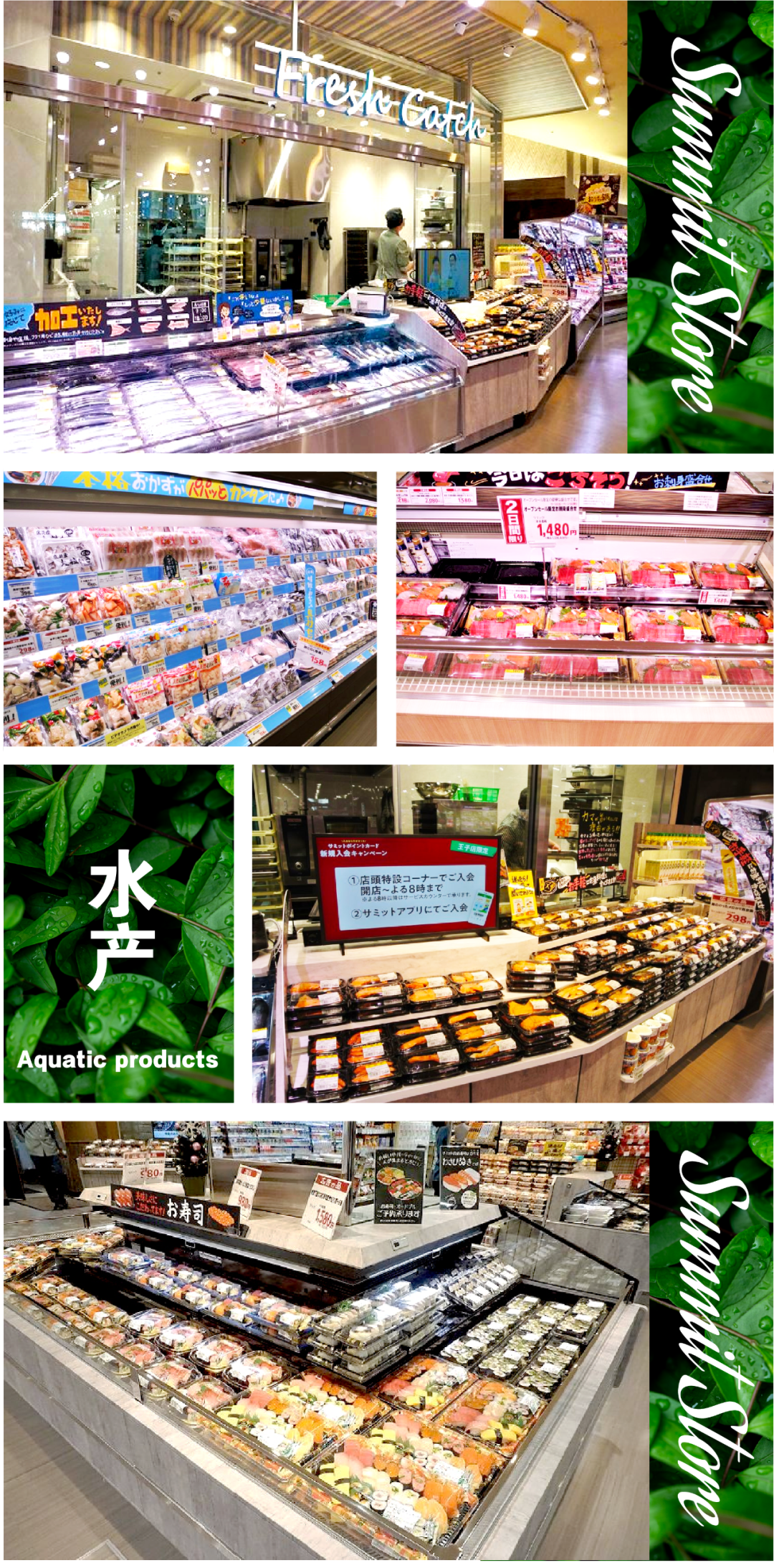 雖然疫情讓熟食整體銷售呈現(xiàn)減少趨勢(shì),但刺身拼盤和壽司的銷售卻不斷增長(zhǎng)。Summit在水產(chǎn)賣場(chǎng)中央以島柜的形式突出陳列刺身拼盤和壽司,并根據(jù)工作日和周末的不同需求調(diào)整商品結(jié)構(gòu)和陳列量。