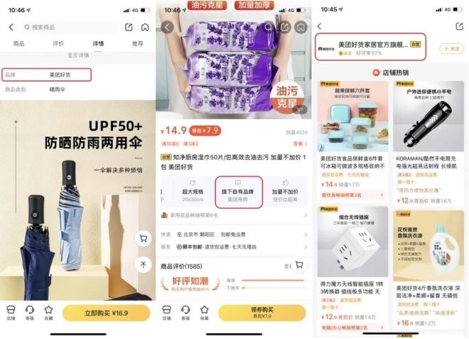到了美團好貨時代,更像京東,其獨立App官方介紹寫到“美團旗下的B2C精選電商,秉承精選商家、嚴控品質的理念.....”就差把正品行貨寫上去了。目前的“美團電商”,像是一個更強調商品牌、品質的拼多多。乍一看,品類和價格與拼多多類似,但仔細看,所售商品多為知名品牌,不像拼多多那么魚龍混雜。