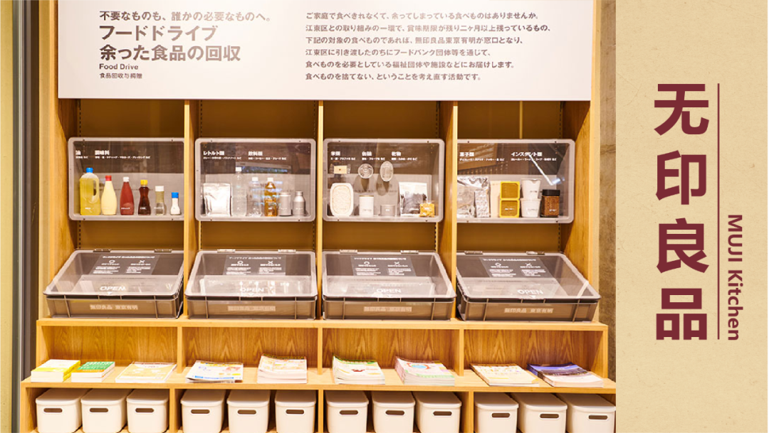 作為綠色行動的重要一環(huán),該店在收銀臺旁邊開設(shè)了Food Drive柜臺,無印良品聯(lián)合公益慈善組織NPO豐島兒童,回收顧客家中剩余的食品和調(diào)料,將其送給公益組織兒童食堂和部分有需求的家庭。