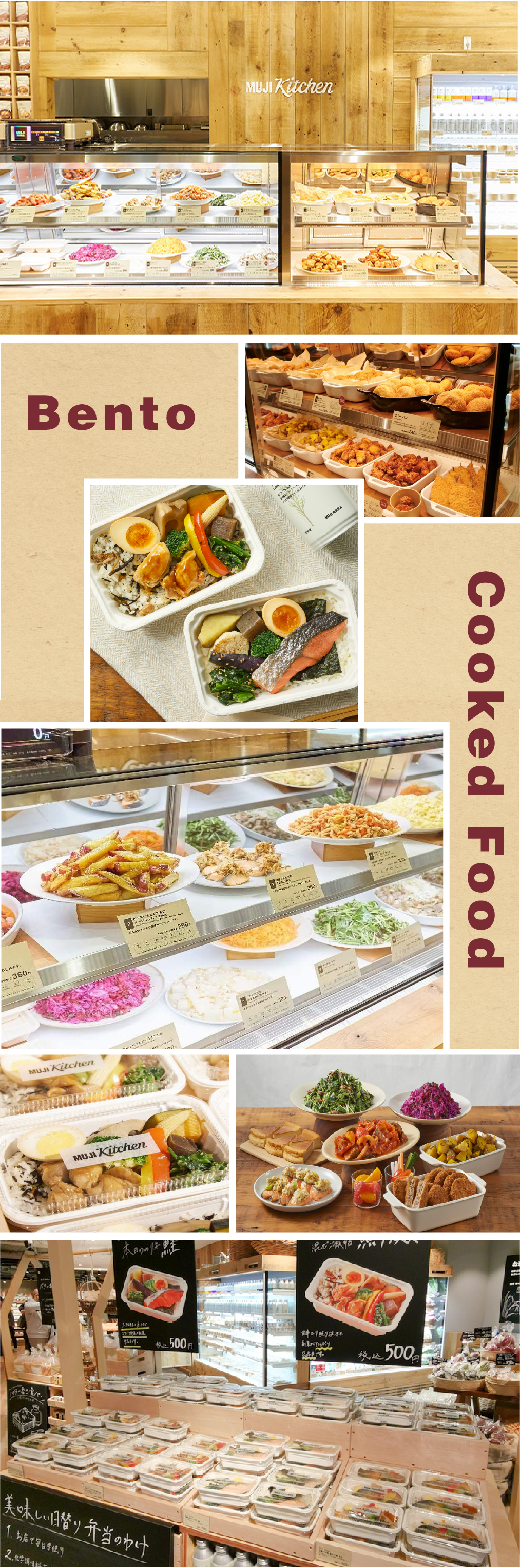 該店以 “在區(qū)域消費者身邊,徒步即可的隨時買到生活必需品社區(qū)小型店”為概念,并首次推出了無印良品的新服務---熟食廚房(MUJI Kitchen),銷售店內(nèi)現(xiàn)制現(xiàn)售的便當。便當熟食可有效提高顧客的來店頻率,無印良品希望通過引入熟食廚房,可提高生活雜貨等商品的并買率。東池袋店作為無印良品熟食廚房的實驗店,未來將這項業(yè)務拓展到日本國內(nèi)的其他無印良品門店。