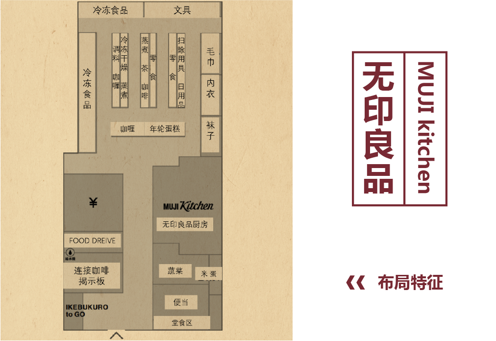 1、熟食廚房MUJI Kitchen作為重點區(qū)域,設(shè)置在入口處右手邊,方便顧客購買,節(jié)省購物時間