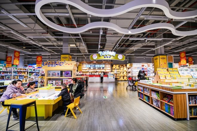 如陳列了1800瓶紅酒的弧形酒架和微醺小棧,滿足遛娃需求的1000多平米的玩體館,以及頗受年輕人喜歡的寶可夢(mèng)快閃主題休閑吧等都增加了賣場(chǎng)的可逛性。以往寵物用品放在干雜課,而在場(chǎng)景化之下,寵物用品與母嬰課進(jìn)行融合,從用戶視角營(yíng)造出萌寵大場(chǎng)景。