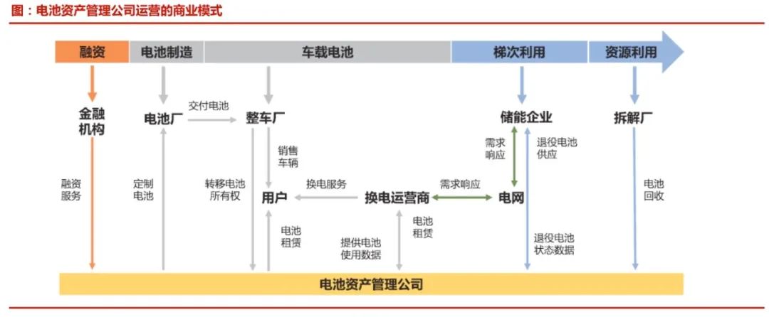 目前,已有電池企業(yè)、電力企業(yè)、梯次利用企業(yè)聯(lián)合建立了電池資產(chǎn)管理公司,撬動換電產(chǎn)業(yè)鏈,并打開了儲能、電池租購、梯次利用、拆解回收產(chǎn)業(yè)鏈。