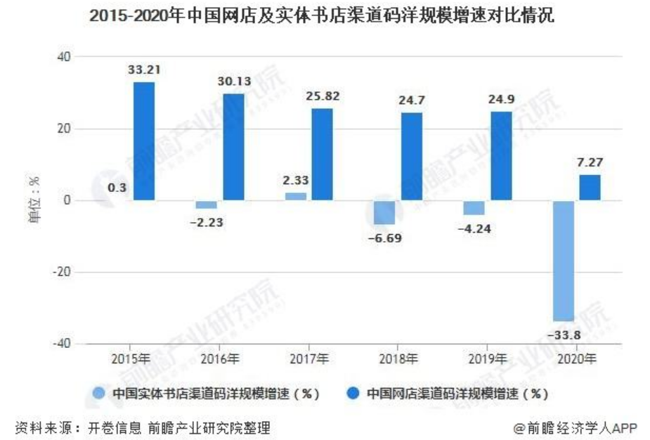 有關(guān)報告顯示,2016年至2019年,中國圖書零售市場保持10%以上增速,2019年中國圖書零售市場銷售規(guī)模約為1023億元,2020年受到疫情影響首次出現(xiàn)負(fù)增長,中國圖書零售市場銷售規(guī)模為971億元,同比下降5%,這是自2001年以來我國圖書零售市場規(guī)模首次出現(xiàn)負(fù)增長,并告別了過去五年一直保持10%以上的增速。