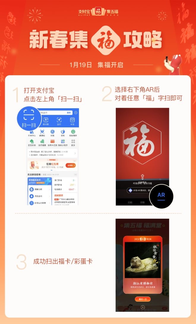 1月19日,支付寶“集五!被顒(dòng)正式開(kāi)啟,時(shí)間為從1月19日0點(diǎn)(臘月十七)至1月31日22點(diǎn)(除夕)。
